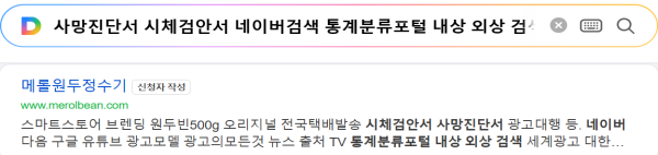 TV+인터넷 판매업자 삼성 LG KT등 네트워크(생산물책임보험)설명을 하지 않거나 의료사고 100% A/S 는신고?광고는 의료사고 광고보험약관=주계약(사망보험금+케어프리보험) 통계분류포털에 재해보장(사망보험금+재해장해급여금)수술,장애,사망  통계분류포털 내용더보기한국표준질병사인분류(S00~Y84)ⅩⅨ.손상, 중독 및 외인에 의한 특정 기타 결과(S00-T98) ⅩⅩ.질병이환 및 사망의 외인(V01-Y98)손상 중독  의료법시행규진단서의료법시행규칙 제10조(사망진단서) 등[별지제6호] 서식 사망진단서(시체검안서 )  ☞☞ 국가법령정보센터  금융감독원 "표준약관"표준약관(제5-13조제1항관련)(보험업감독업무시행세칙)감염병(발생 ,사망(검안) 신고서 감염병의 예방 및 관리에 관한 법률 통계분류포 1급감염등 검색 탄저 내용더보코딩 끝코딩시행 2026. 3. 4.] [보건복지부령 제1159호, 2026. 3. 4., 타법개정]의료법 시행규칙 [별지 제6호서식]개정 2021. 6. 30 사망진단서(시체검안서)손표시 팝업 코딩완료 처리 되었습니다.통계분류포털 사망진단서(시체검안서)사망의종류외인사 사고의종류사망(질병) 내상 외상 손상(상해) 통계분류포털 수술 장애보장 특약부활장해  탄저 1급 감염병  중독 기타 119 응급환자 재난문서 용도:진단서,후유장해진단서 의무기록표 등 보험교통재해특약통계분류포털사망진단서(시체검안서해부)메롤쇼핑몰(자사몰)광고상품판매전문 쇼핑몰 입니다. https://smartstore.naver.com/merolbean 오리지널500g 원두빈은 스토어 전국택배발송 구입문의 010-6838-4169Copyrightsⓒ2018 메롤원두정수기 All rights reserved. sorriso_logo_b70.png