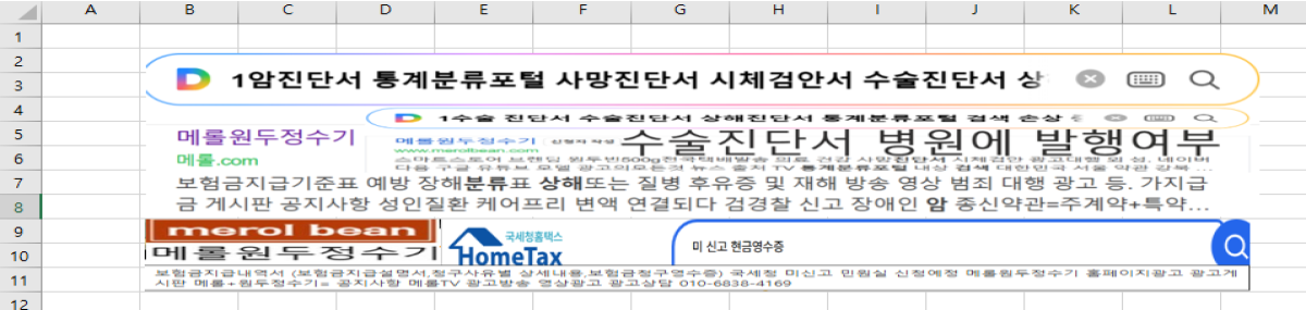 뉴스TV 사망시(의료사고)신고시 출동하지 않는 경찰은?근거자료→통신사 발신전화요청 보험 약출처(무)플러스UP변액연금 제3관 보험금등의 지급(회사의 주된 의무)교통재해특약(장해분류표,재해분류표)공지사항,광고게시판 광고 예정 아래 납입면제 약관 참조 등.3.수사기간의조사경찰서방문시 구입서류 준비는?신분증,구급증명원(구급활동일지) 장애가 없슴으로 CHECK 재난번호UZ4181187 (보장대상이 되는 재해→보험약관 통계분류포털에서 IDH 검색진단서(71.9(암코드) C코드입니다. (M994.5/3)?M800~M858)신생물형대분류? 몇급감염병 입니까? (의무기록지에서 의약품처방전 확인M코드에 관련된 치료를 했는지 확인하기)→감염병 및 예방에관한 법률에서 1급감염병,2급감염병,3급감염병을(질병관리청,보건복지부) 관리가 필요하여 질병관리청장이 보건복지부장관과 협의하여 지정하는 감염병을 포함한다 "바이러스 뇌출혈,내상,외상,손상,중독,장애,사망,재해"등 코드가 너무많이 검색인 되고있습니다, 내상하고 외상만 검색해서 표시해도 외인사코드가 나옵니다.출력해서 경찰서 사망진단서,후유장해진단서,제출시 첨부해야 합니까?의사가 신고 하게되어 있습니다. 검색→"질병이환의 외인의사망→사망진단서에 외인사사망 표시하지 않습니다.통계분류포털에서 "수술"검색 수술코드가 있습니다.사망의원인(수술의사의 주요소견,해부학적인 의사의 소견) "외인사 표시를 병사(자연사)로 잘못기재함"진단서 등 허위작성 보험약관(통계분류포털에서 보장대상이되는 재해 찾기입니다) →""재해 장애" (진단서IDH표시됨 C71.9)악성신생물(자연재난,사회재난)→시민안전보험약관 확인? 의무기록지(수술확인서,후유장해진단서,사망진단서(수술확인서 표시없음)등,네이버파워링크,전화번호 광고,영상광고 등6838-4169