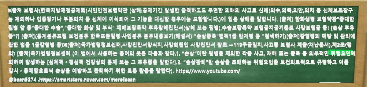 ※출처 보험사(한국지방재정공제회)시민안전보험약관 [상해:공제기간 발생한 급격하고도 우연한 외래의 사고로 신체(의수,의족,의안,의치 등 신체보조장구는 제외하나 인공장기나 부분의치 등 신체에 이식되어 그 기능을 대신할 경우에는 포함합니다.)에 입은 상해를 말합니다. [출처] 한화생명 보험약관"중대한 질병 암 등"중대한 수술","중대한 화상 및 부식" 재해보장특약 후유장해진단서(상해 또는 질병),수술보장특약 보험금지급기준표 사망보험금 등! [손상 후유증"?] [출처](통계분류포털 보건분류 한국표준질병·사인분류 분류내용보기(해설서) "손상중독"법적1급 탄저병 등 "검색하기)[출처]감염병의 예방 및 관리에 관한 법률 1급감염병 등)※[출처]국가법령정보센터,사망진단서양식지,사망의원인 사망진단서 참조.→119구급일지,사고증 보험사 제출(재난문서),제2조(정의) [출처]국가법령정보센터 (이 법에서 사용하는 용어의 뜻은 다음과 같다.1. “손상”이란 질병을 제외한 각종 사고, 재해 또는 중독 등 외부적인 위험요인에 의하여 발생하는 신체적ㆍ정신적 건강상의 문제 또는 그 후유증을 말한다.2. “손상관리”란 손상을 초래하는 위험요인을 보건의료적으로 규명하고 이를 감시ㆍ통제함으로써 손상을 예방하고 관리하기 위한 모든 활동을 말한다). https://www.youtube.com/@bean5274 ,https://smartstore.naver.com/merolbean