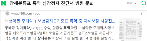 별표1.보험금지급기준표(사망보험금+케어프리보험금) 특약 중 재해보장1.보험금지급기준표(만기축하금+사망보험금+재해장해급여금→보험사 제출→부지급→행정복지관(장애인증)→사망진단서에 [심장정지]진단이 없습니다(보험사에 제출한 의무기록지나 진단서,사망진단서 [심장정지]기록된것이 있는지 보험사에 확인요청->금융감독원(특약누락 민원신청)→경찰,병원,보건소,금융감독원 등 진단서,통계분류포털에서 분류내용 더 보기(해설서) 심장정지 검색 → IX.순환계통의 질환(I00-I99) 광고 출처-대한유니버셜CI종신보험(1종,2종)보통보험약관 중대한 질병[중대한 암,중대한 뇌졸증,중대한 급성심근경색증,말기신부전증,말기간질환,말기폐질환]->공지사항에서 별표3 장해분류표 1.장해의정의 2.신체부위 ->1.눈의장해 2.귀의장해 3.코의장해 4.씹어먹거나 말하는장해5.외모의추상(추한모습)장해 6.척추(등뼈)의 장해 7.체간골의 장해 8.팔의 장해 9.다리의 장해 10.손가락의 장해 11.발가락의 장해 12.흉 복부장기의 및 비뇨생식기의 장해 13.신경계·정신행동 장해 <붙임> 일상생활 기본동작ADLs 제한 장해평가표[이동동작,음식물섭취,배변배뇨,목욕,옷입고 벗기->후유장해진단서→메롤뉴스 네이버광고 파워링크 구급증명서 광고상담