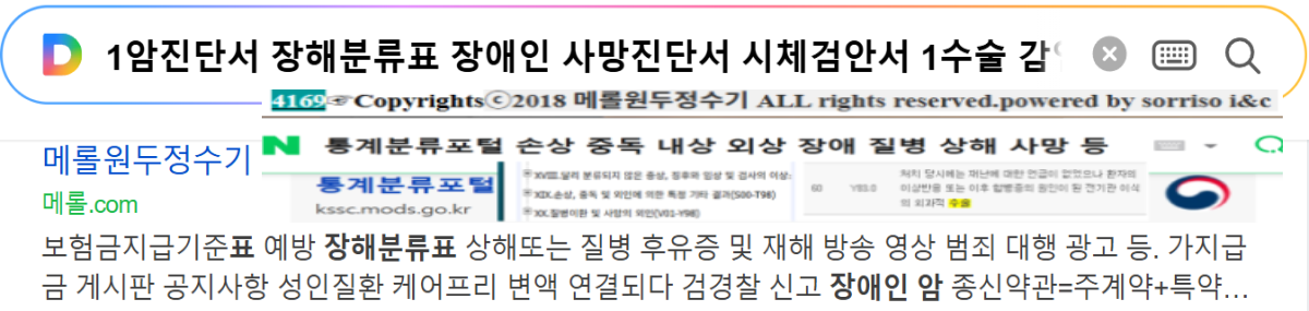 의료사고 광고 보험약관=주계약(사망보험금+케어프리보험) 통계분류포털에 재해보장(사망보험금+재해장해급여금)수술,장애,사망통계분류포털 내용더보기 한국표준질병사인분류(S00~Y84)ⅩⅨ.손상, 중독 및 외인에 의한 특정 기타 결과(S00-T98) ⅩⅩ.질병이환 및 사망의 외인(V01-Y98)손상 중독  의료법시행규진단서의료법시행규칙 제10조(사망진단서) 등[별지제6호] 서식 사망진단서(시체검안서 )국가법령정보센터금융감독원"표준약관"(제5-13조제1항관련)(보험업감독업무시행세칙)감염병(발생 ,사망(검안) 신고서 감염병의 예방 및 관리에 관한 법률 통계분류포 1급감염등 검색 탄저 내용더보코딩 끝코딩시행 2026. 3. 4.] [보건복지부령 제1159호, 2026. 3. 4., 타법개정]의료법 시행규칙 [별지 제6호서식]개정 2021. 6. 30 사망진단서(시체검안서)손표시 팝업 코딩완료 처리 되었습니다.통계분류포털 사망진단서(시체검안서)사망의종류외인사 사고의종류사망(질병) 내상 외상 손상(상해) 통계분류포털 수술 장애보장 특약부활장해  탄저 1급 감염병  중독 기타 119 응급환자 재난문서 용도:진단서,후유장해진단서 의무기록표 등 보험교통재해특약통계분류포털사망진단서(시체검안서해부)메롤쇼핑몰(자사몰)광고상품판매전문 쇼핑몰 입니다.오리지널500g 원두빈은 스토어 전국택배발송 구입문의 010-6838-007b6c5cb4bd0930139bf5001c7f2321_1775277890_04.png
