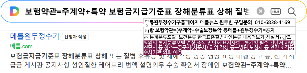사항 보험약관=(주계약+수술보장특 메롤+원두정수기=공지