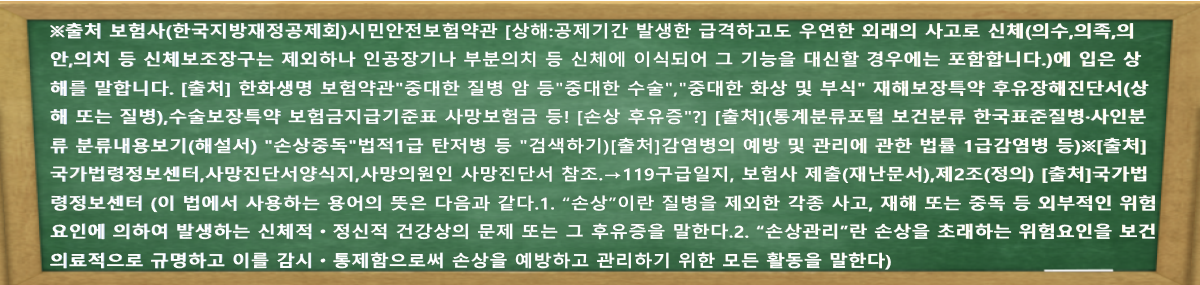 ※출처 보험사(한국지방재정공제회)시민안전보험약관 [상해:공제기간 발생한 급격하고도 우연한 외래의 사고로 신체(의수,의족,의안,의치 등 신체보조장구는 제외하나 인공장기나 부분의치 등 신체에 이식되어 그 기능을 대신할 경우에는 포함합니다.)에 입은 상해를 말합니다. [출처] 한화생명 보험약관"중대한 질병 암 등"중대한 수술","중대한 화상 및 부식" 재해보장특약 후유장해진단서(상해 또는 질병),수술보장특약 보험금지급기준표 사망보험금 등! [손상 후유증"?] [출처](통계분류포털 보건분류 한국표준질병·사인분류 분류내용보기(해설서) "손상중독"법적1급 탄저병 등 "검색하기)[출처]감염병의 예방 및 관리에 관한 법률 1급감염병 등)※[출처]국가법령정보센터,사망진단서양식지,사망의원인 사망진단서 참조.→119구급일지, 보험사 제출(재난문서),제2조(정의) [출처]국가법령정보센터 (이 법에서 사용하는 용어의 뜻은 다음과 같다.1. “손상”이란 질병을 제외한 각종 사고, 재해 또는 중독 등 외부적인 위험요인에 의하여 발생하는 신체적ㆍ정신적 건강상의 문제 또는 그 후유증을 말한다.2. “손상관리”란 손상을 초래하는 위험요인을 보건의료적으로 규명하고 이를 감시ㆍ통제함으로써 손상을 예방하고 관리하기 위한 모든 활동을 말한다). https://www.youtube.com/@bean5274 ,https://smartstore.naver.com/merolbean